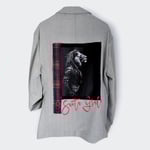 Blazer de Tweed Gris Claro con una silueta oversize que fusiona la sofisticación urbana con la fuerza de la naturaleza. Esta pieza única está confeccionada en un tejido texturizado gris claro y presenta un impactante y audaz diseño trasero.