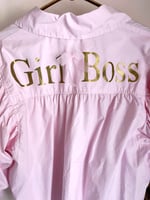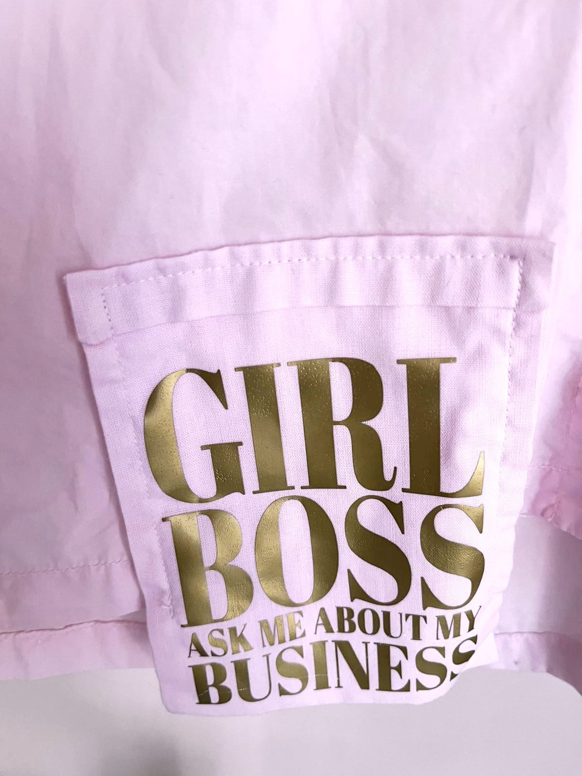 Camisa de cuello clásico y manga abullonada (tres cuartos). Confeccionada en popelín de algodón en un suave color rosa pastel. Mangas con volumen estructurado y cierre frontal de botones.