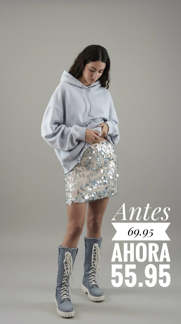 Confeccionada con un suave tejido en azul, esta sudadera de la Colección Princess eleva el estilo urbano a otro nivel. Los cortes circulares, estratégicamente decorados con incrustaciones brillantes, añaden un toque de fantasía y sofisticación.